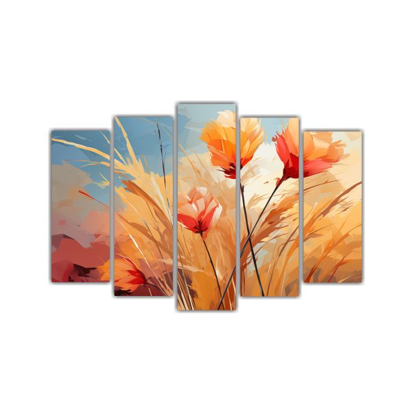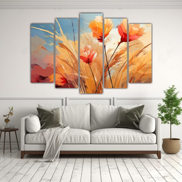 Pinturas Abstractas Pampas Grass Amarillo Y Rojo En Tela