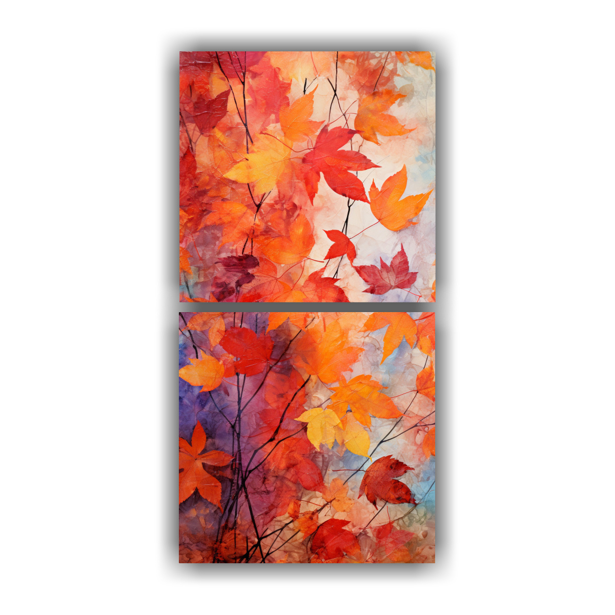 Pinturas Abstractas Sobre Follaje Otoñal En Lienzo Set De 2