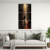 Este cuadro abstracto de luces y sombras en movimiento sería ideal para decorar una sala de estar moderna Colócalo sobre un sofá de color neutro para crear un contraste impactante Combínalo con cojines en tonos coral y dorado, y agrega una lámpara de pie en color negro para resaltar el ambiente sofisticado y elegante