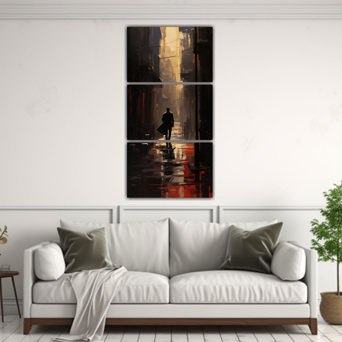 DecoCuadros tiene a la venta un trío de pinturas abstractas que representan un ajetreo intenso de luces y sombras Los colores deslumbrantes de coral, negro, dorado, azul marino grisaceo, carmesí, amarillo claro y gris se mezclan en estas obras de arte únicas