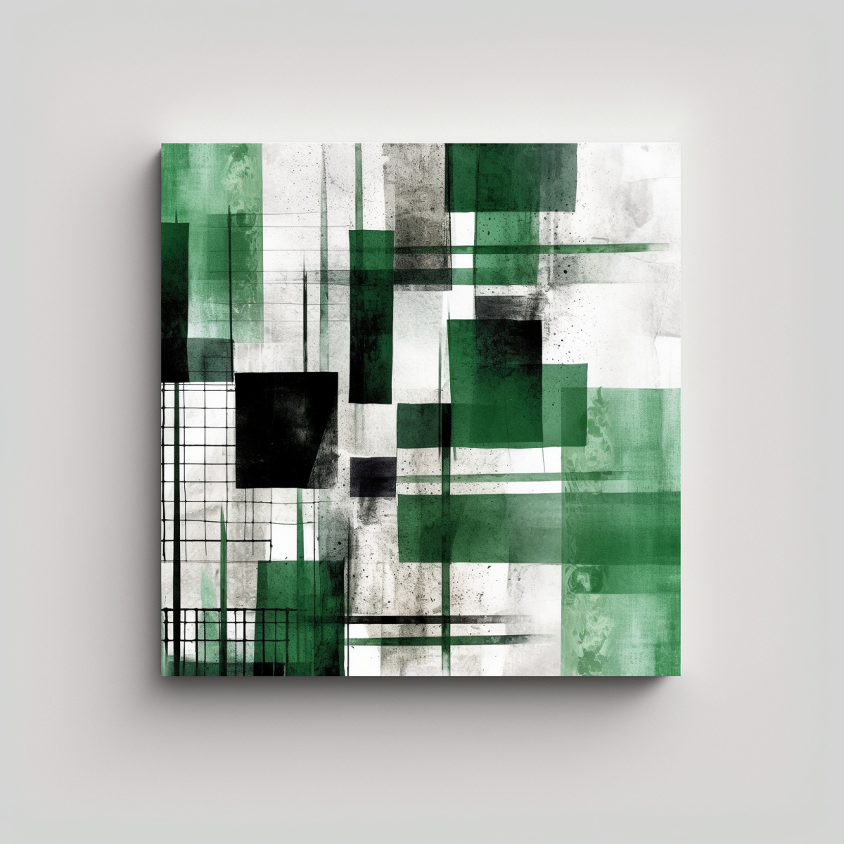 Pinturas Abstractas Verdes Y Blancas Con Composición Horizontal