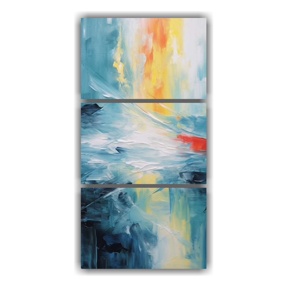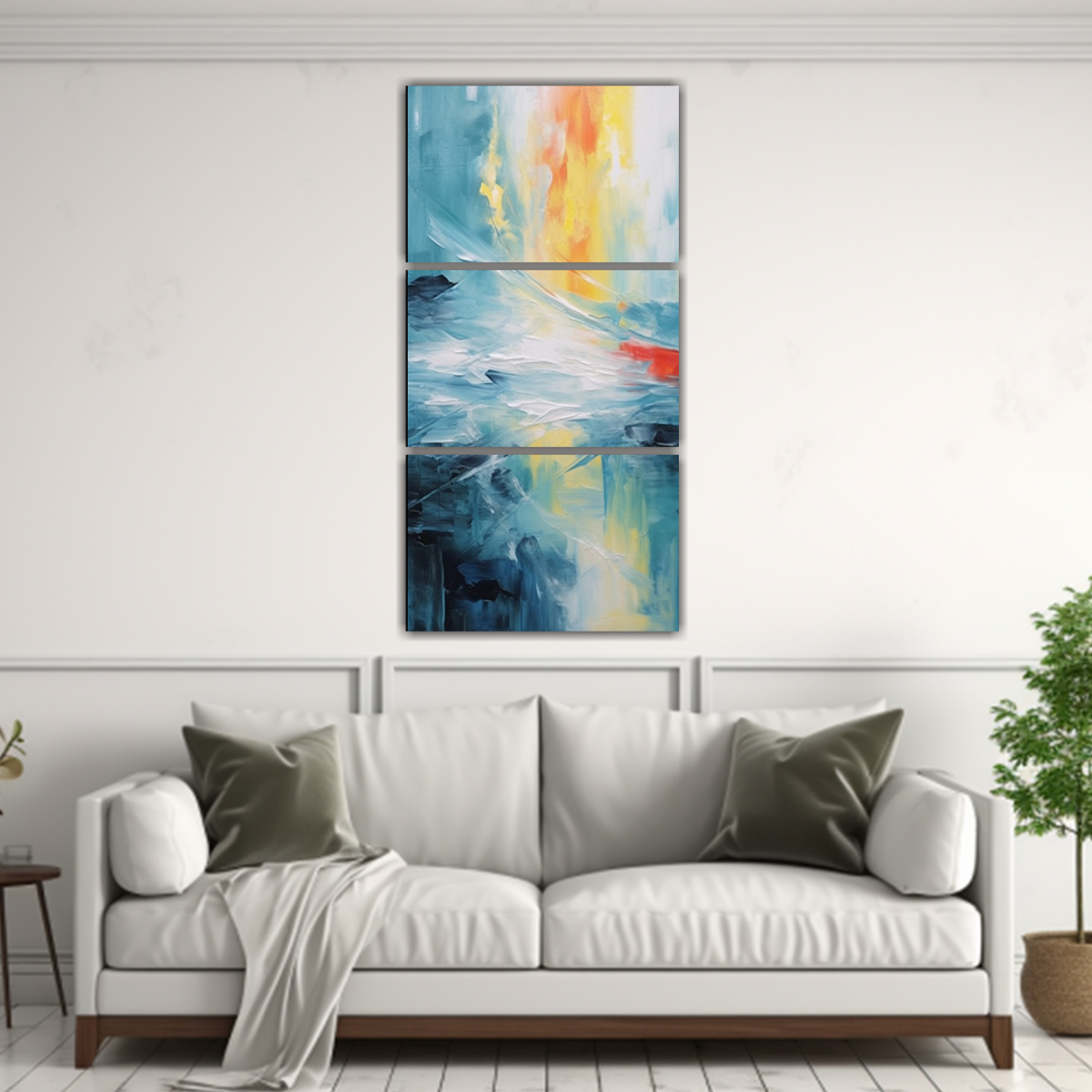 Este cuadro abstracto vertical en tonos suaves y relajantes sería ideal para decorar el área del comedor o la sala de estar Combínalo con muebles en tonos neutros para crear un ambiente elegante y sofisticado en tu hogar