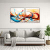 Decora tu hogar con los cuadros decorativos impresos en tela de alta calidad con bastidores de madera de DecoCuadros Los colores carmesí, azul marino grisáceo, beige, coral, amarillo claro, turquesa, plateado, menta y gris crearán un ambiente de equilibrio visual en tu espacio