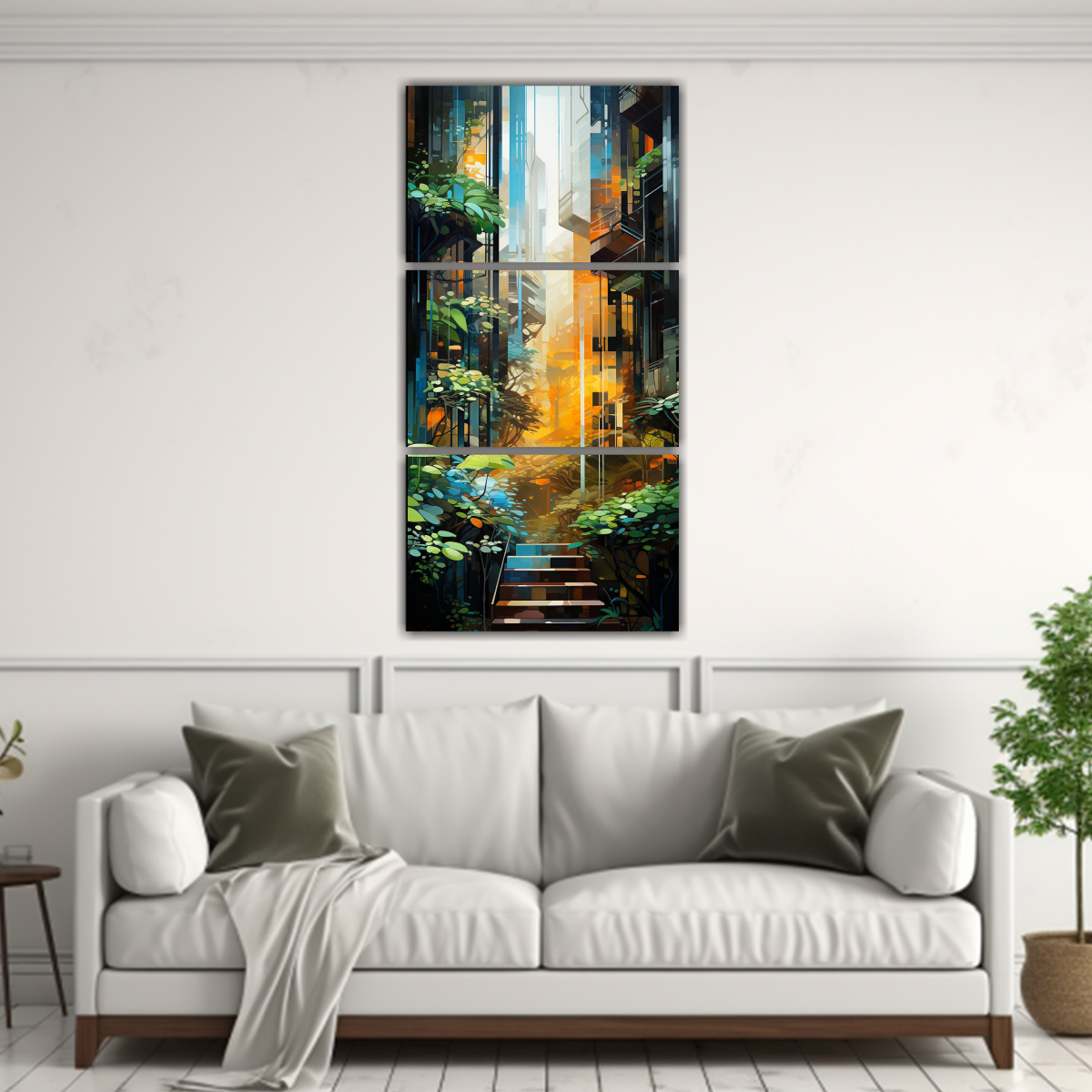 Pinturas Abstractas Y Decorativas En Arquitectura Moderna Y Naturaleza En Armonía.
