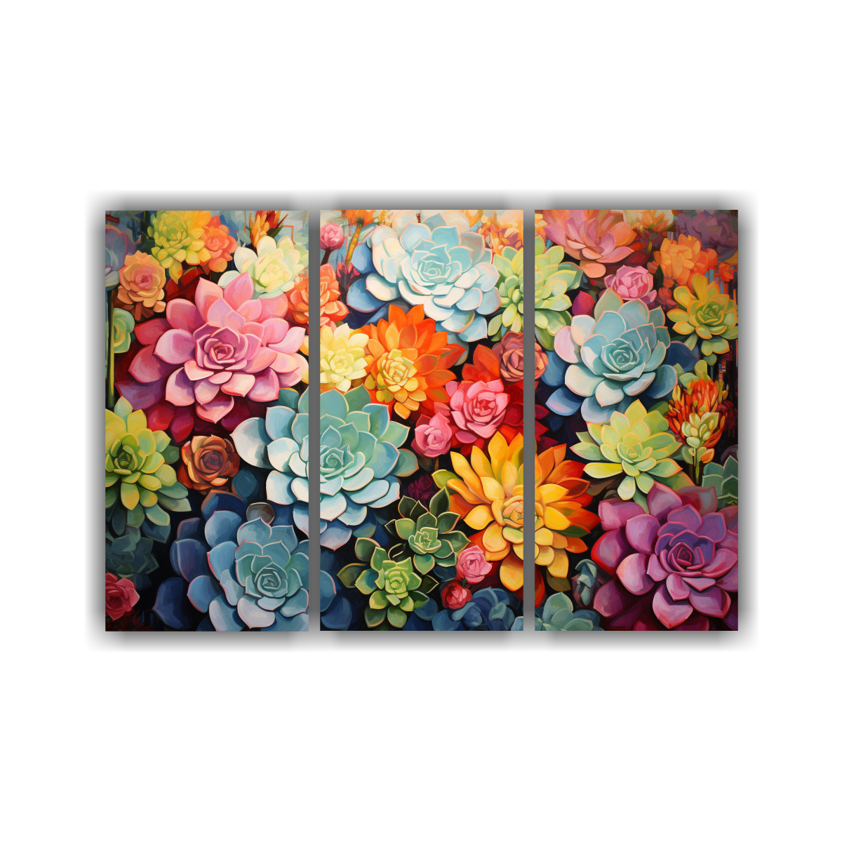 Pinturas Acuarela Brillante De Suculentas Y Flores Abstractas