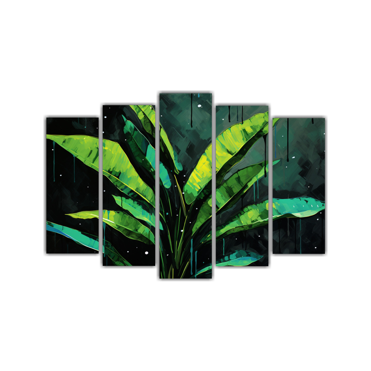Pinturas Acuarela Cinco Artes De Pared: Heliconia En Verde Y Negro Inspiración Neonoir