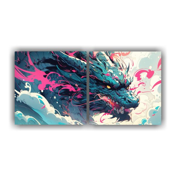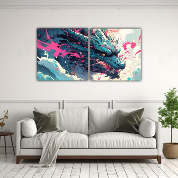 Pinturas Acuarela: Dragón En Turquesa Y Rosa, Atmósfera Neonoir