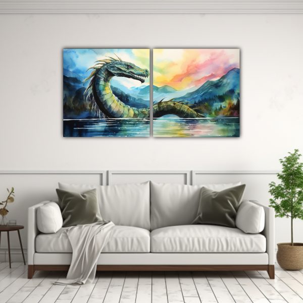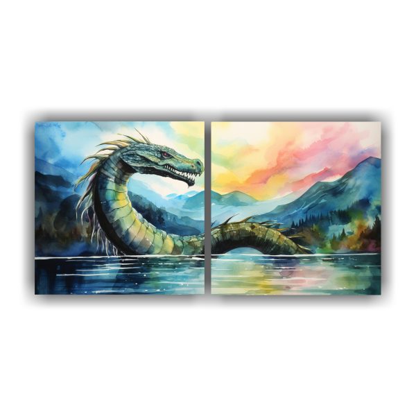 Pinturas Acuarela Modernas Monstruo Lago Ness En Bastidor: Set 2 Telas.