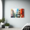 Este cuadro de paisaje urbano moderno quedaría perfecto en la sala de estar sobre un sofá de color neutro para resaltar la paleta de colores vibrantes Combínalo con cojines en tonos verde azulado o coral para crear un ambiente armonioso y sofisticado