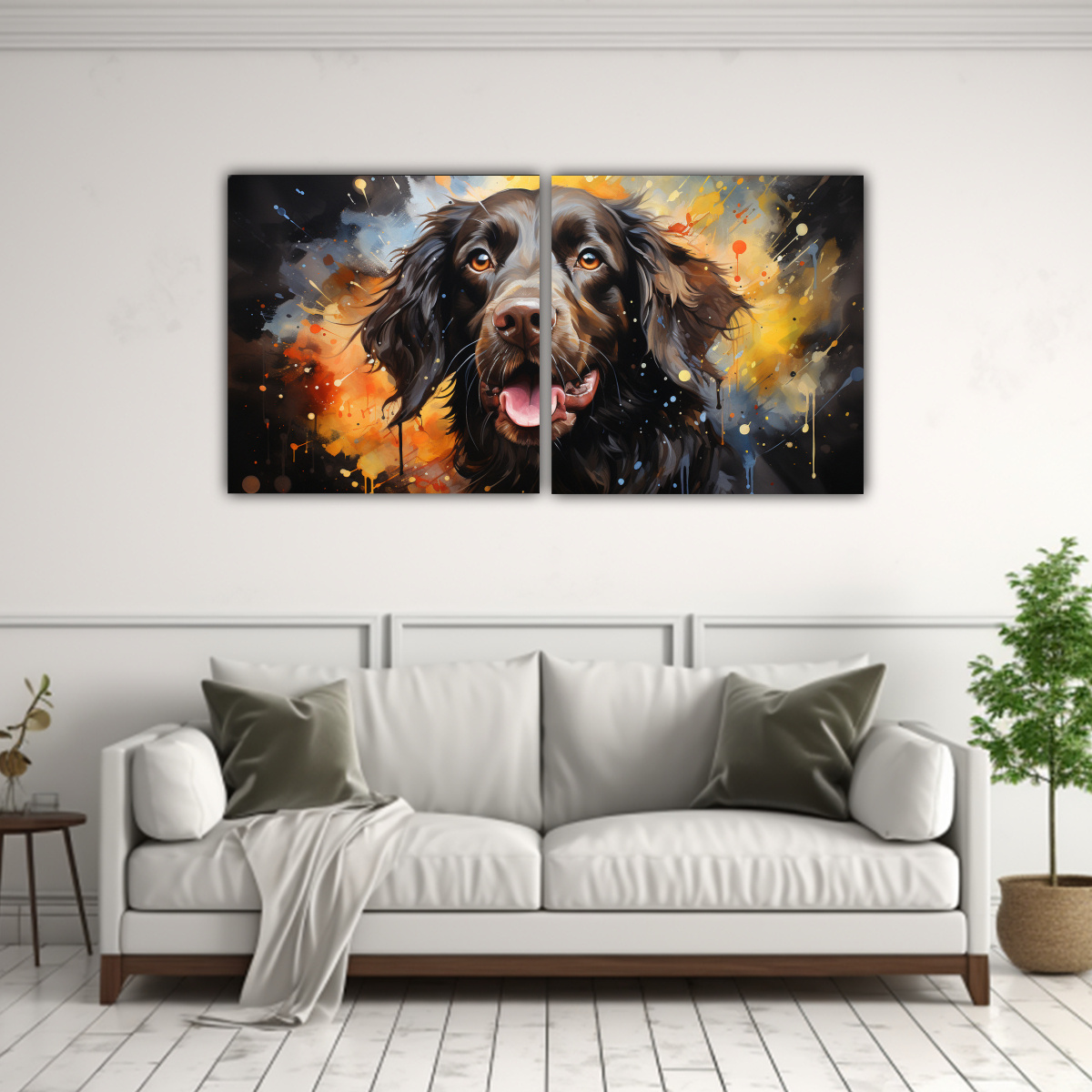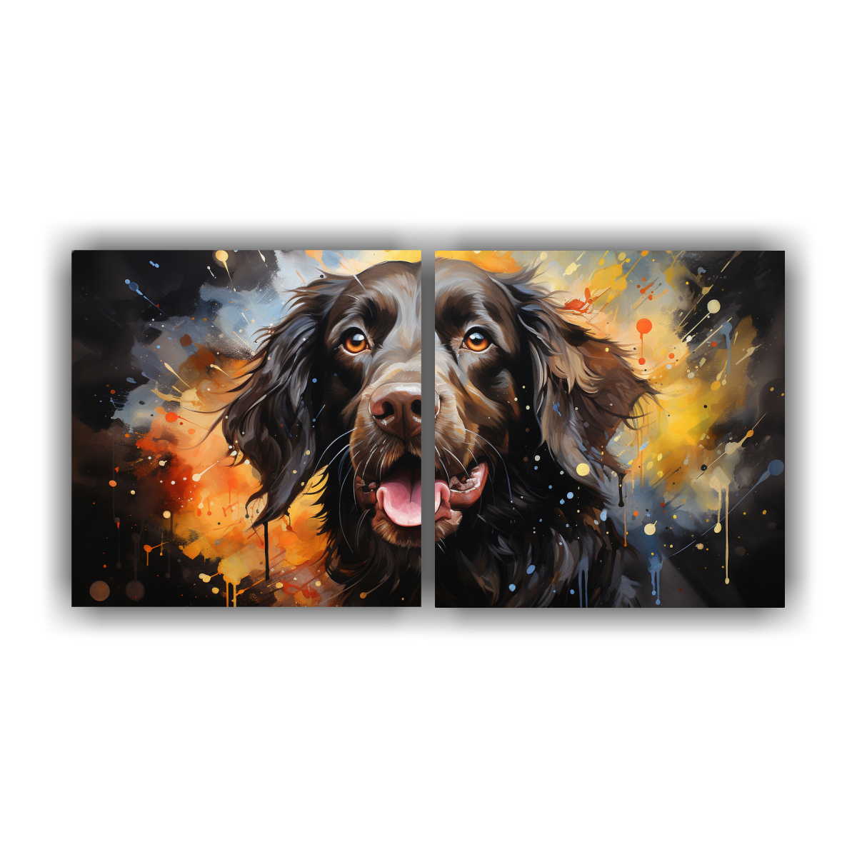 Este cuadro de Pinturas acuarelas modernas luminosas estilo spaniel colorido se vería espectacular en el área de la sala de estar sobre un sofá de color neutro o en un pasillo para darle vida y color a tu hogar Combínalo con cojines en tonos coral y accesorios en negro para lograr un ambiente moderno y acogedor