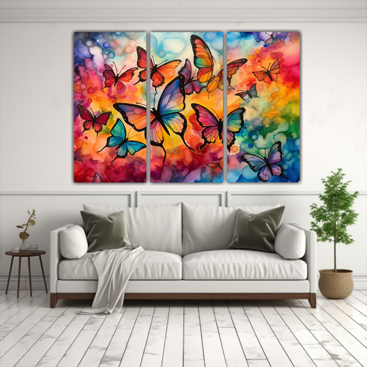Pinturas Al Alcohol En Tela: Mariposas Volando, Ventana De Vidrio Manchado.