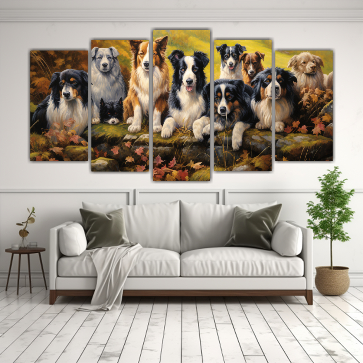 Renueva tu espacio con esta obra de arte única Añade un toque de elegancia y color con este cuadro que captura la belleza de los perros pastor y collies en un estilo artístico impresionante La combinación de colores vibrantes lo hace ideal para salas de estar, dormitorios o incluso oficinas