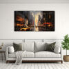 This Two Paintings Warmth canvas will add a touch of elegance and drama to any room Its captivating colors, including Silver, Black, Gold, Gray, Mustard, Grayish Navy Blue, and Crimson, bring warmth and depth to the space Hang it above a modern gray sofa in the living room or place it on a large empty wall in the dining area to create a stunning focal point Pair it with gold or silver accents for a luxurious touch This painting will transform your home into a sophisticated and stylish haven