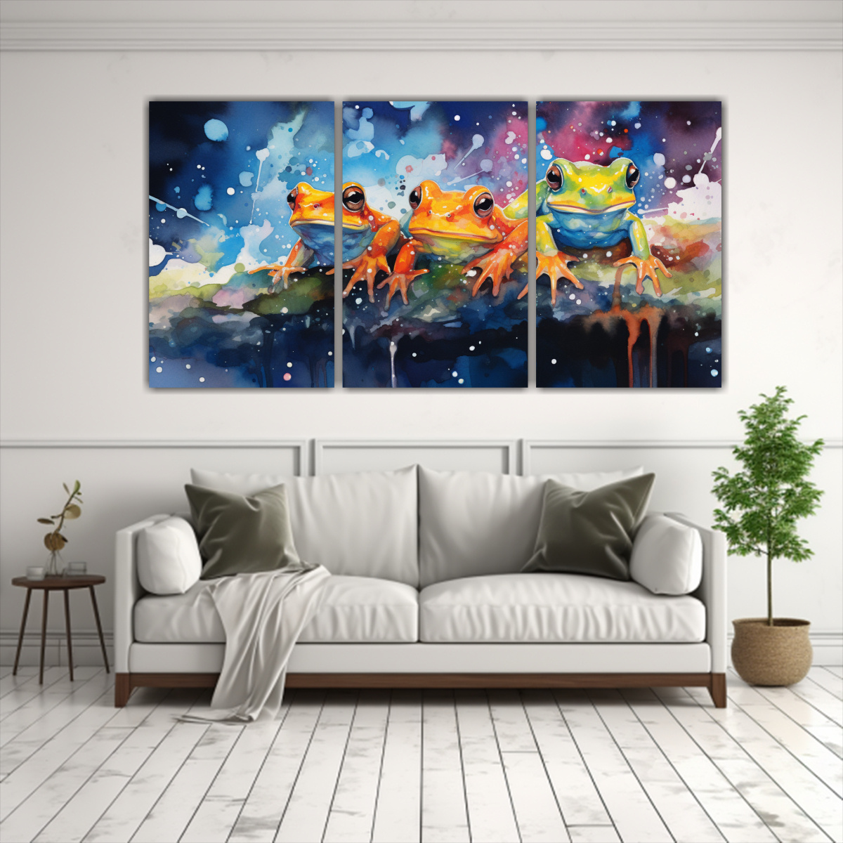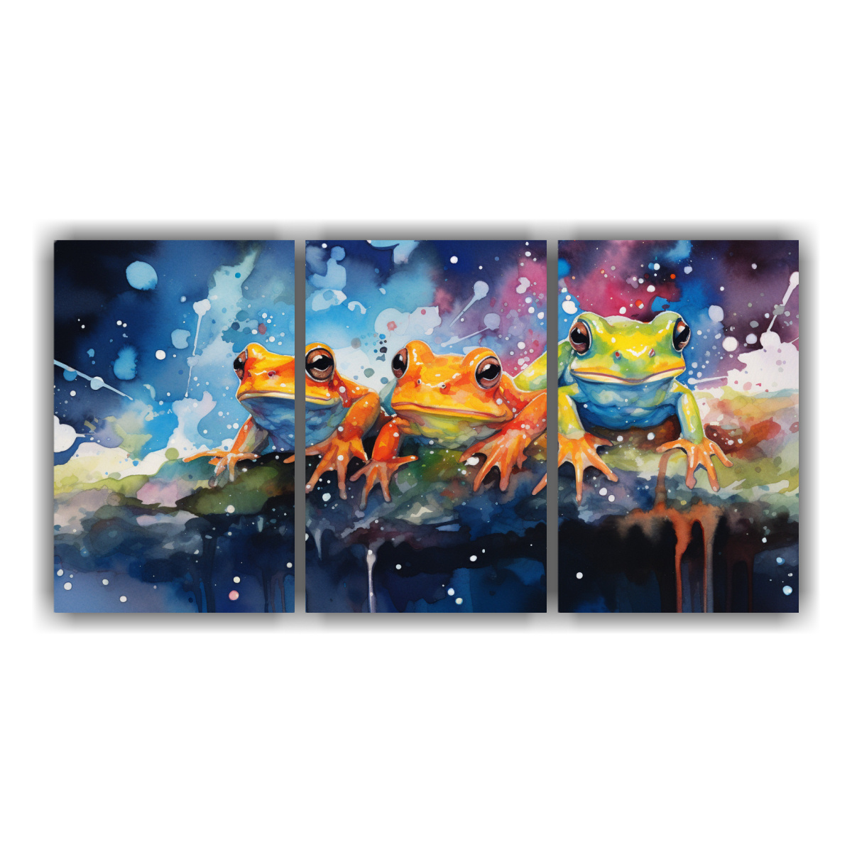 Aporta un ambiente colorido y espectacular a tu espacio con esta pintura en tela de alta calidad Los tonos vibrantes y la temática única de ranas y sapos hacen de este cuadro una pieza llamativa para cualquier habitación ¡No te pierdas la oportunidad de adquirir un diseño exclusivo!