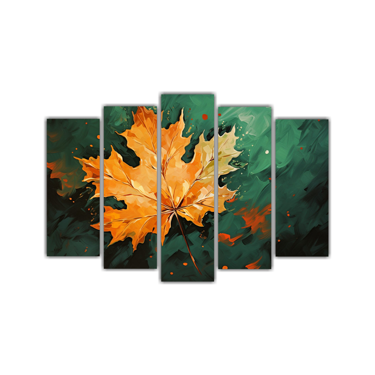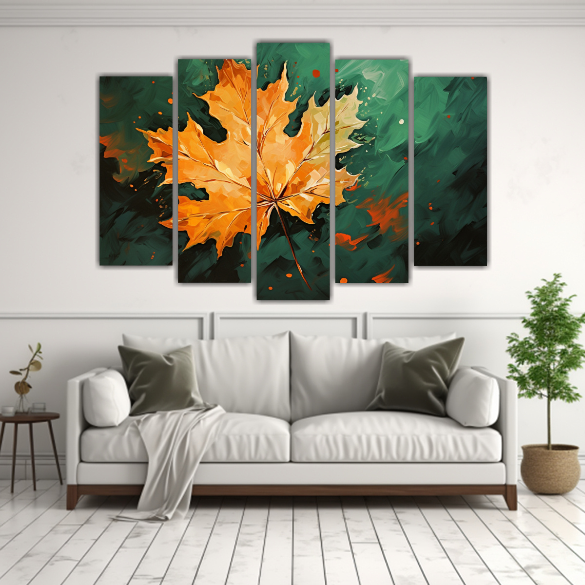 Pinturas De Ambiente Neonoir Con Hojas De Arce En Verde Y Naranja.