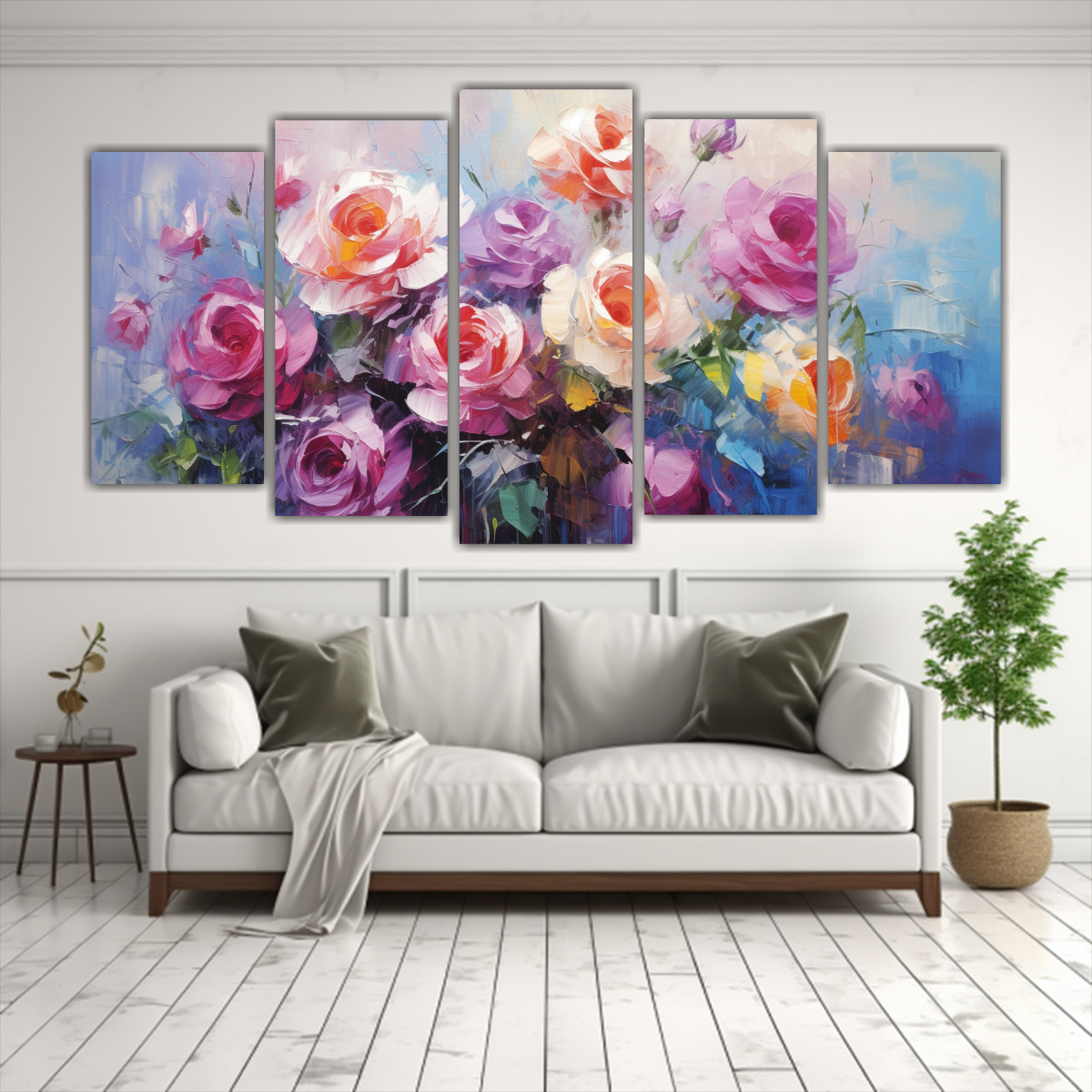 Este cuadro de belleza natural en colores vibrantes quedará perfecto en tu sala de estar Colócalo sobre el sofá para darle un toque de frescura y elegancia al ambiente Combínalo con cojines en tonos neutros como beige o gris y una alfombra en tonos similares para crear una armonía visual en tu espacio