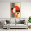 Decora tus espacios con el cuadro ‘Pinturas de arte abstracto en colores amarillos complementarios con geometría plana visual, una grande’ de DecoCuadros Este cuadro combina colores como el azul marino grisáceo, coral, amarillo claro, carmesí, gris y plateado, creando una estética moderna y atractiva Diseños exclusivos, entrega rápida y gratuita en Santiago y envíos express a regiones