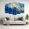 Pinturas De Arte Abstracto Mar Azul Con Detalles Dorados.