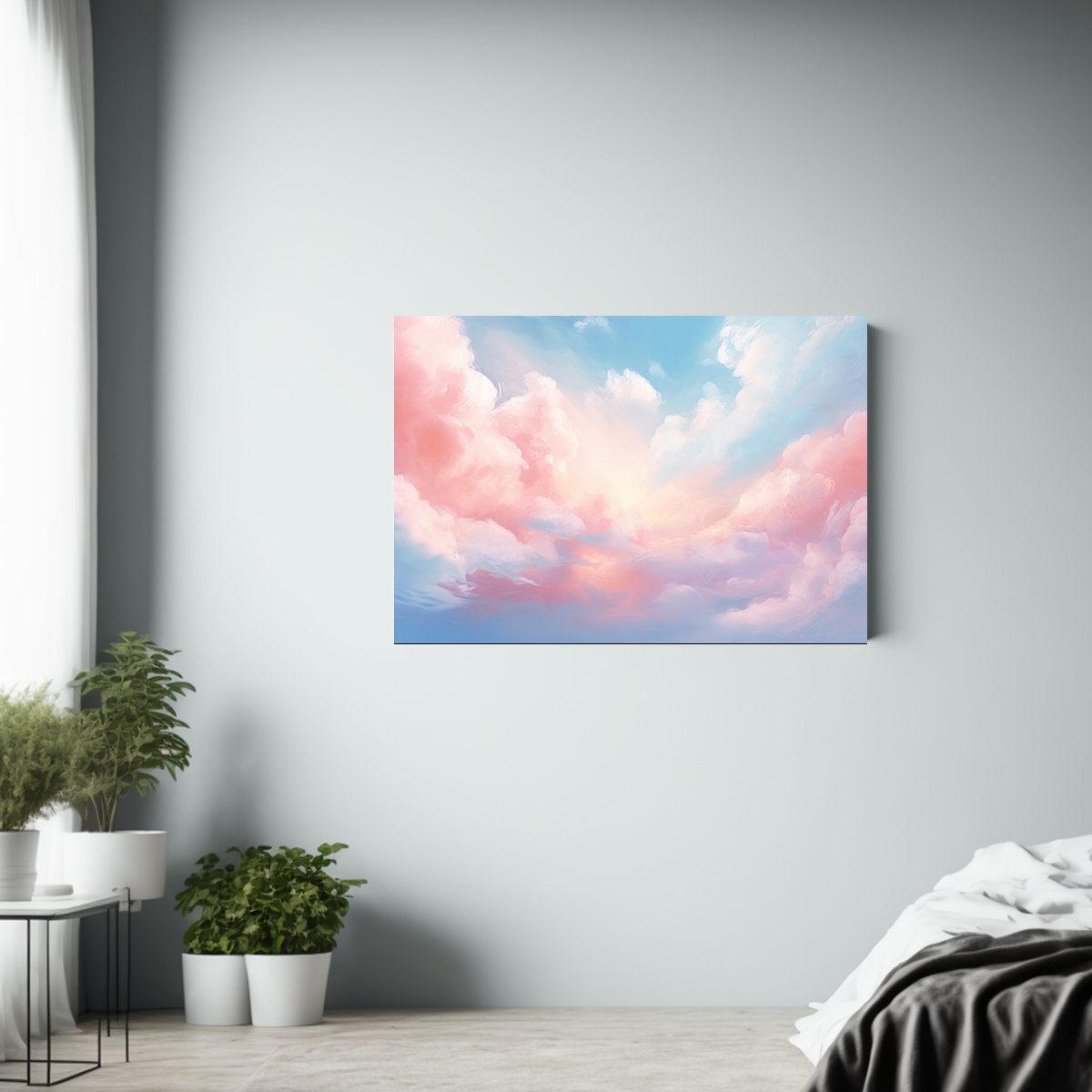 Este cuadro de nubes pastel en cielo azul es perfecto para colocar en el dormitorio, sala de estar o incluso en el recibidor Combínalo con muebles en tonos neutros para crear un ambiente relajante y armonioso en tu hogar