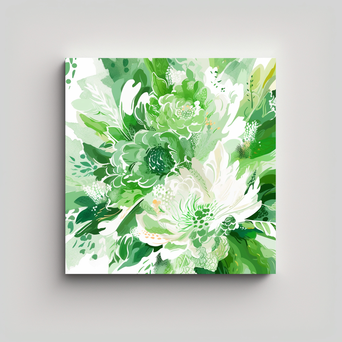 Pinturas De Arte De Pared En Los Colores Verde Y Blanco Con Atmósfera Neonoir En El Estilo Actual