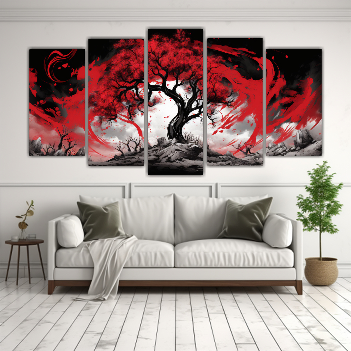 Decora tus espacios con estilo y elegancia con nuestros cuadros decorativos impresos en tela de alta calidad Elige el cuadro ‘Cinco Artes de Pared Tonos Impacto visual A Cottonwood Tree in Red AND Black Colors Neo-noir atmosp’ y dale un toque único a tus paredes Tenemos la mejor calidad del mercado y los precios más baratos Envío rápido y gratis en Santiago y envíos a regiones express