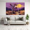 Pinturas De Arte De Pared Joshua Tree En Colores Púrpura Y Dorado: Equilibrio Visual Con Atmósfera Neonoir