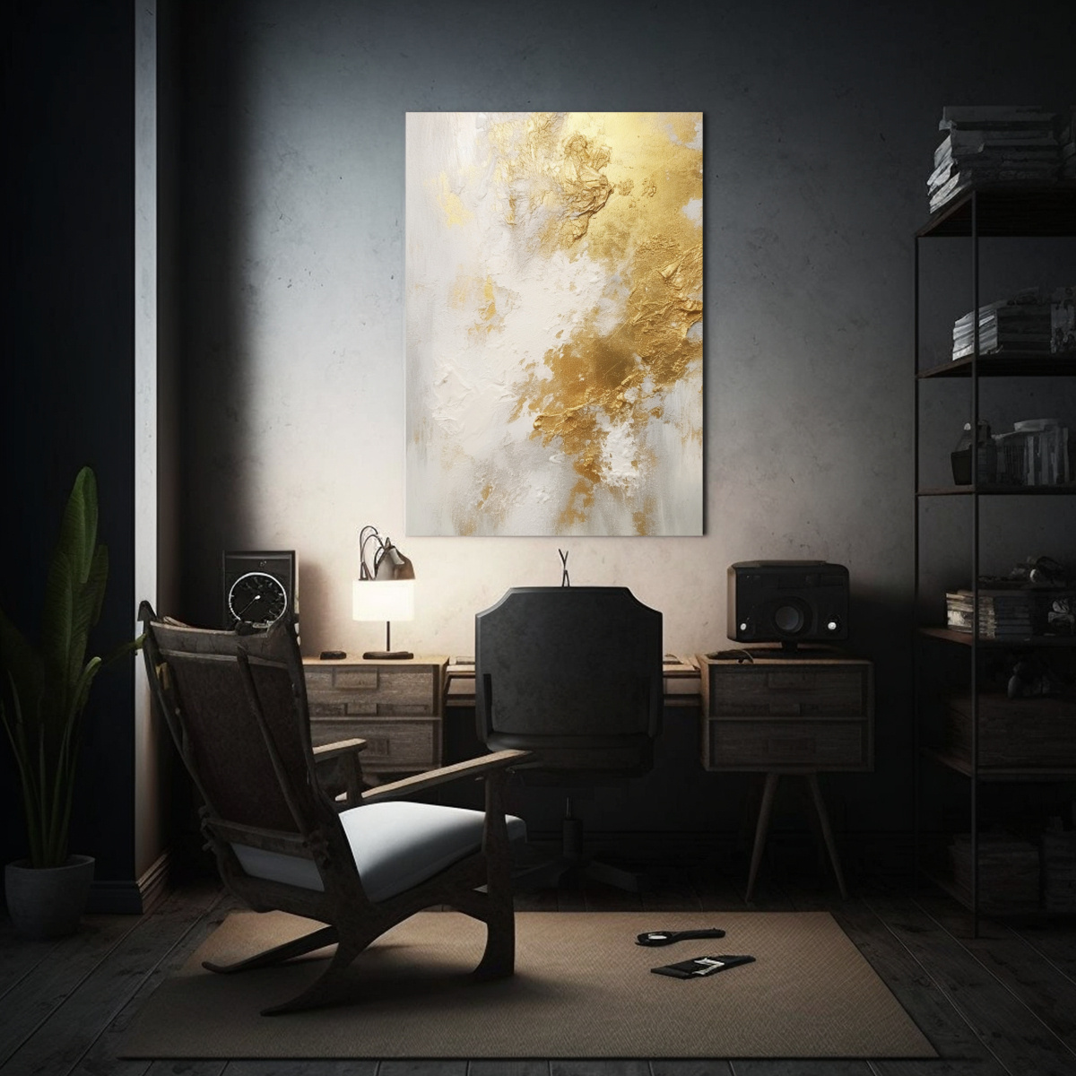 Pinturas De Arte De Pared Multicolor Con Textura Blanca Y Lámina Dorada De Alta Calidad Nikolin