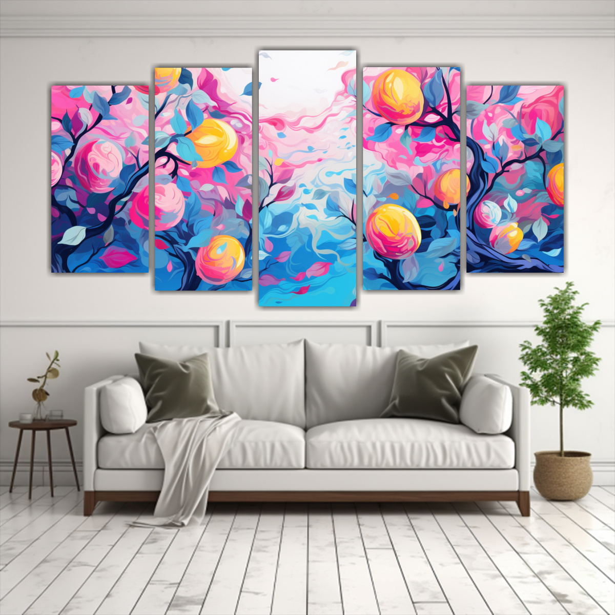 Pinturas De Cinco Telas En Bastidor Con Sensibilidad Artística En Tonos Rosa Y Azul Para Un Ambiente Neonoir
