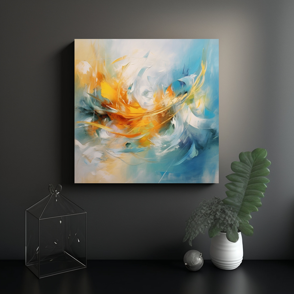 Este cuadro abstracto en verde azulado y tonos alegres sería ideal para decorar tu sala de estar, creando un ambiente vibrante y lleno de vida Combínalo con muebles en tonos neutros para resaltar su belleza única