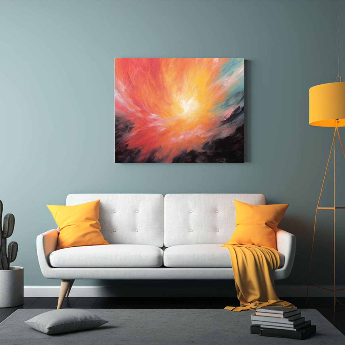 Para realzar la belleza de este cuadro, te recomendamos colocarlo en un espacio amplio con paredes blancas para crear un contraste vibrante Perfecto para salas de estar o espacios de trabajo que buscan un toque artístico y moderno