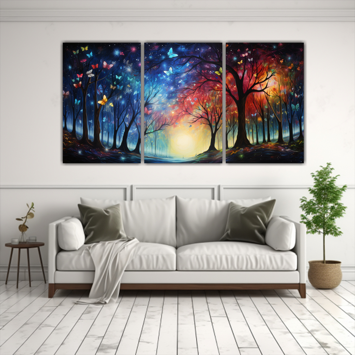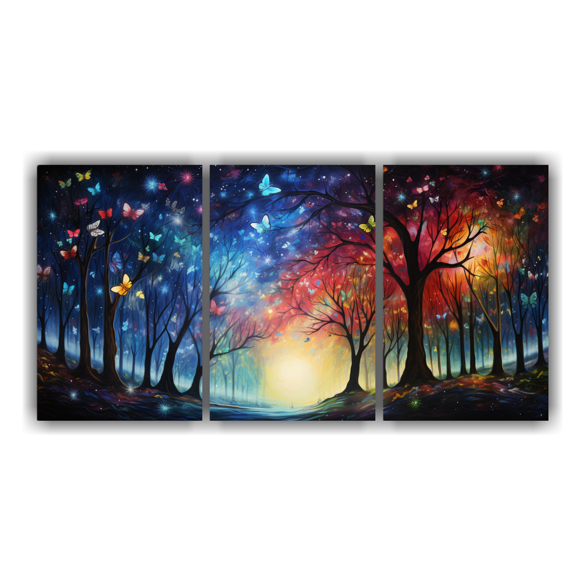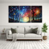 Pinturas De Decoración Con La Exposición Set 3 Lienzos Abstracción De La Dinámica Danza Abstracta De Luciérnagas En Una Luna