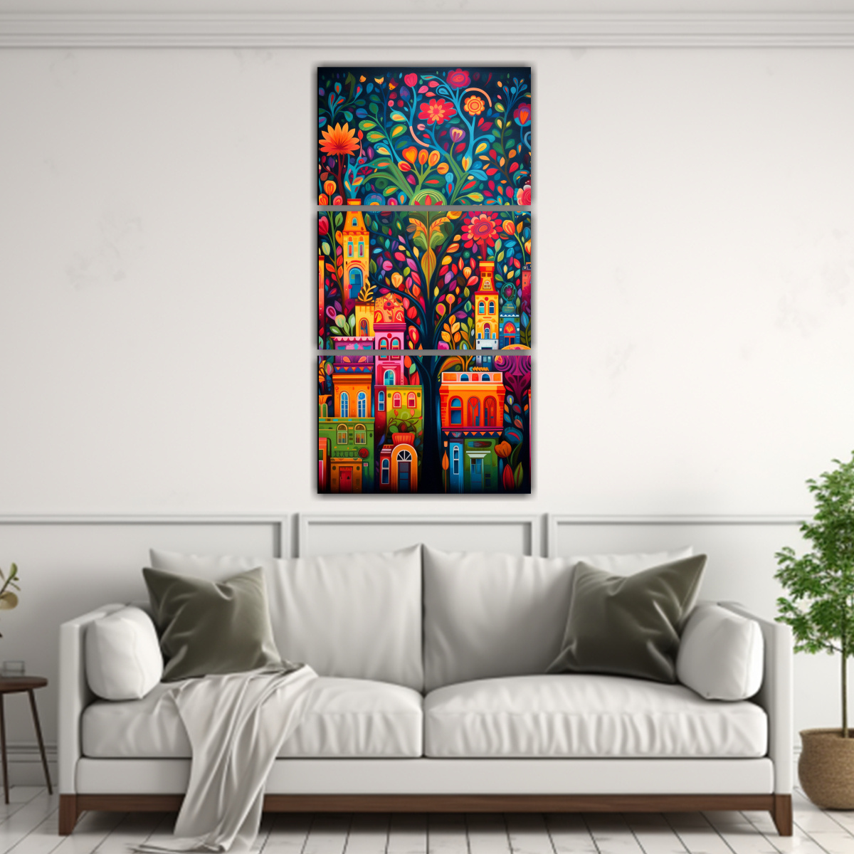 Este set de 3 telas en bastidor abstractas de arte folclórico mexicano sería perfecto para agregar un toque vibrante y colorido a tu sala de estar Colócalas sobre un sofá gris o neutro para crear un contraste impresionante ¡Seguro se convertirá en el centro de atención de tu decoración!