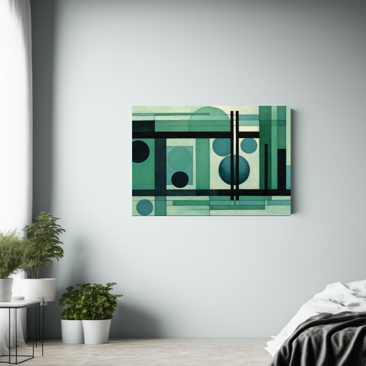 Renueva tu hogar con esta pintura decorativa que aportará un toque de sofisticación y misterio Los colores azul y verde crean una atmósfera de tranquilidad y equilibrio, ideal para salas de estar o dormitorios Combina perfectamente con muebles blancos o grises para resaltar su elegancia