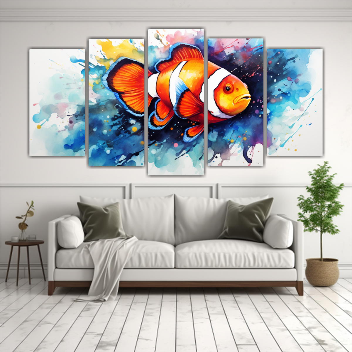 Pinturas De Decoración De Acuarelas De Payaso Colorido En Cinco Lienzos.