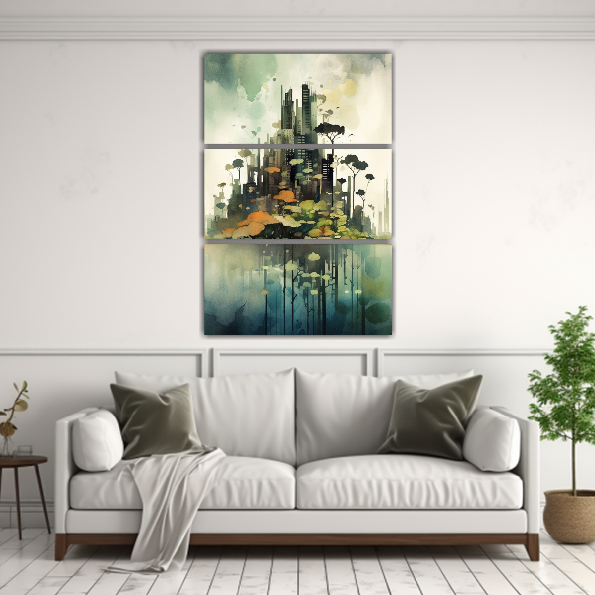 Decora tu espacio con el cuadro de acuarela en tonos más oscuros de Tres Artes Imagen Salon Nuestros cuadros impresos en tela de alta calidad con bastidores de madera crearán un ambiente único en tu hogar La combinación de colores azul marino grisáceo, beige, gris, plateado y menta dará un toque moderno y elegante a cualquier habitación Además, ofrecemos los precios más económicos del mercado y las entregas más rápidas Aprovecha nuestra promoción de envío gratis en Santiago y envíos express a regiones ¡No esperes más para tener una decoración excepcional!