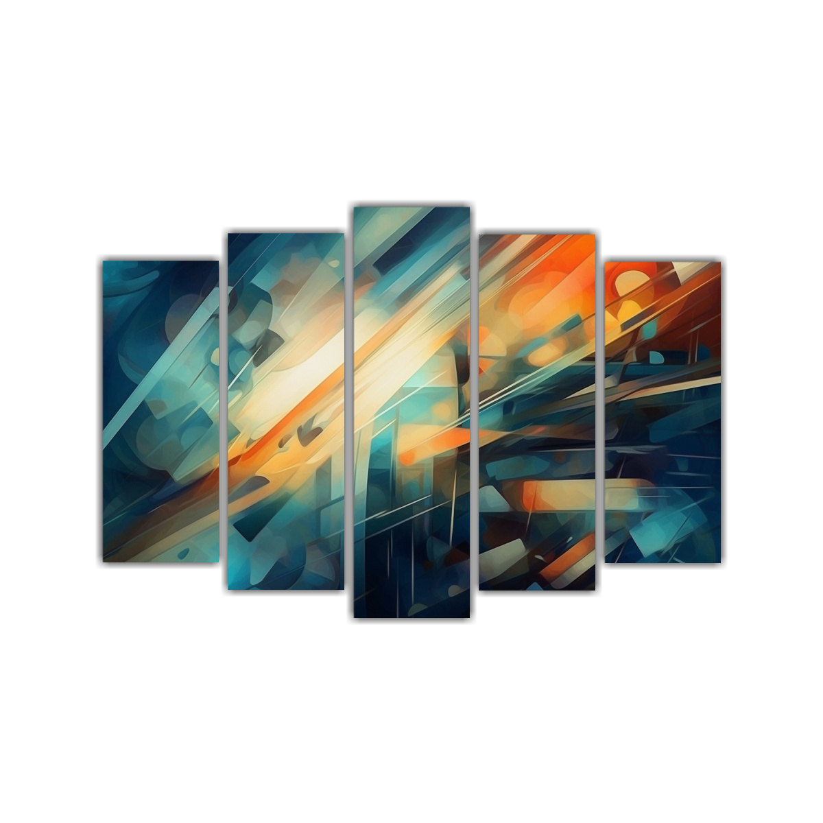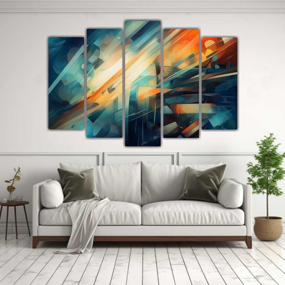 Pinturas De Decoración De Arte Abstracto Futurista Con Cinco Figuras En Lienzo.