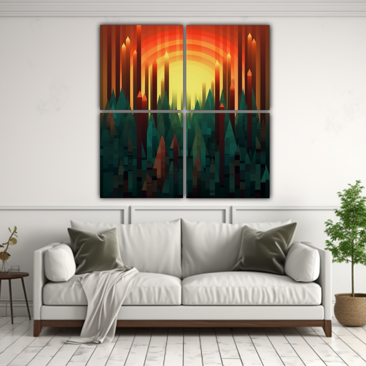 Pinturas De Decoración De Arte De Pared Estilo Pop Art Con Finas Líneas, Creando Un Pequeño Bosque.