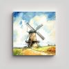 Pinturas De Decoración De Campo De Molino Con Cielo Azul En Acuarela De Estilo De Boceto Detallado De Arte Abstracto