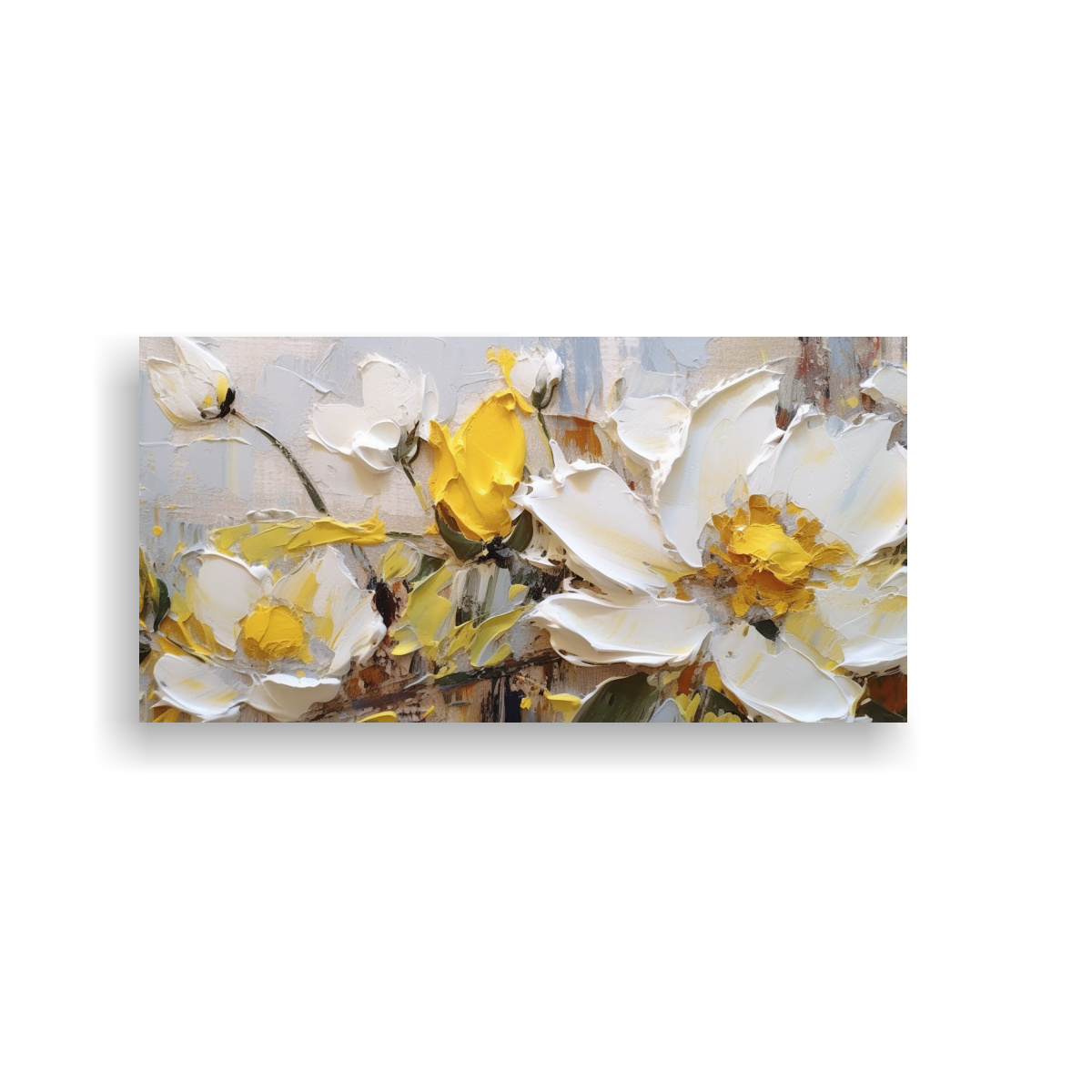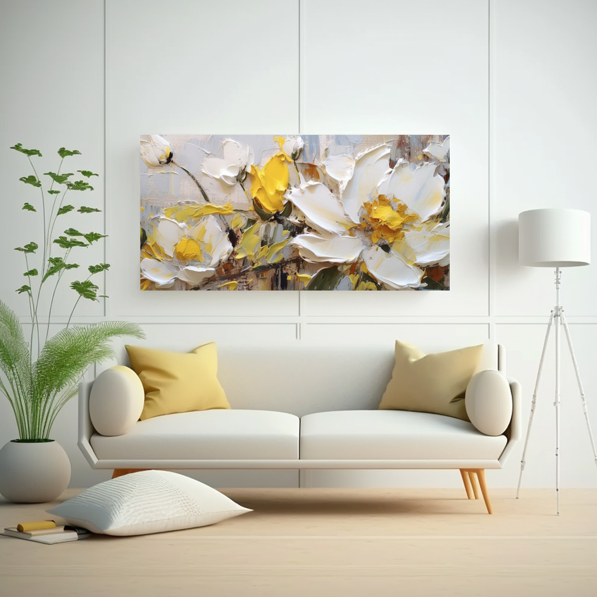 Pinturas De Decoración De Flores Amarillas Y Blancas En Impasto Grueso
