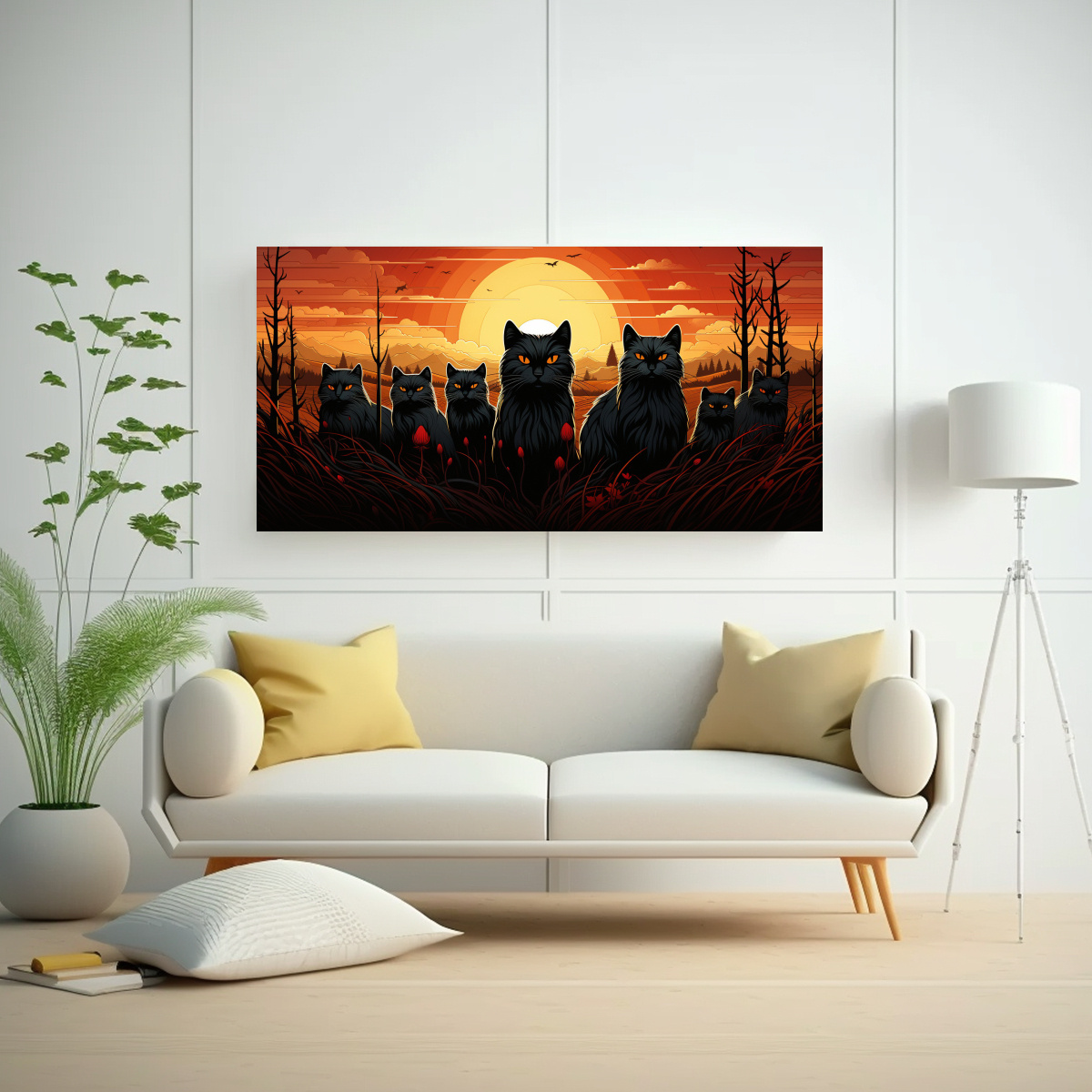 Este cuadro de gatos negros encajaría perfectamente en una sala de estar moderna o en un dormitorio elegante Combínalo con muebles en tonos neutros como blanco o gris para resaltar su belleza natural y añadir un toque de misterio a tu espacio