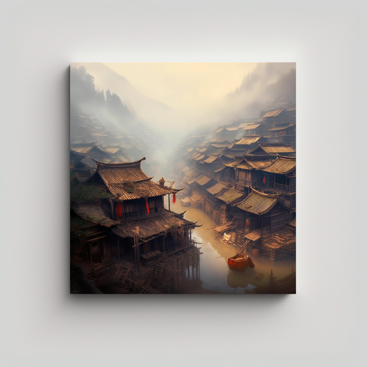 Pinturas De Decoración De Pueblo Chino Con Edificios Antiguos En Tela De Alta Calidad