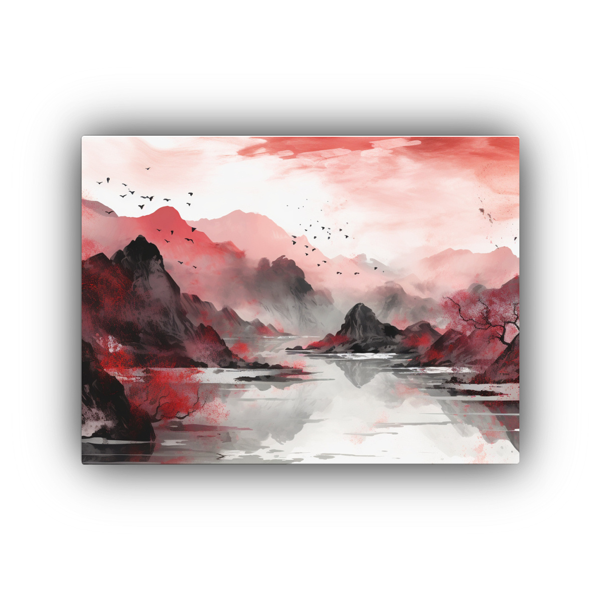 Pinturas De Decoración De Terror Blanco Con Fondo Depresivo Y Grandes Montañas A La Izquierda.