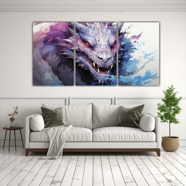 Pinturas De Decoración De Vitalidad Neonoir De Un Dragón En Colores Púrpura Y Blanco.