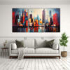 Este cuadro decorativo dinámico de tres lienzos de tela Tonos Reflejo es perfecto para dar vida a tu sala de estar Colócalo sobre el sofá principal para crear un punto focal único y añadir un toque moderno y sofisticado Combínalo con cojines en tonos plateado, turquesa y gris, y complementa el espacio con lámparas de pie en tonos dorado y coral ¡Sorprende a tus invitados con este elegante y vibrante cuadro!