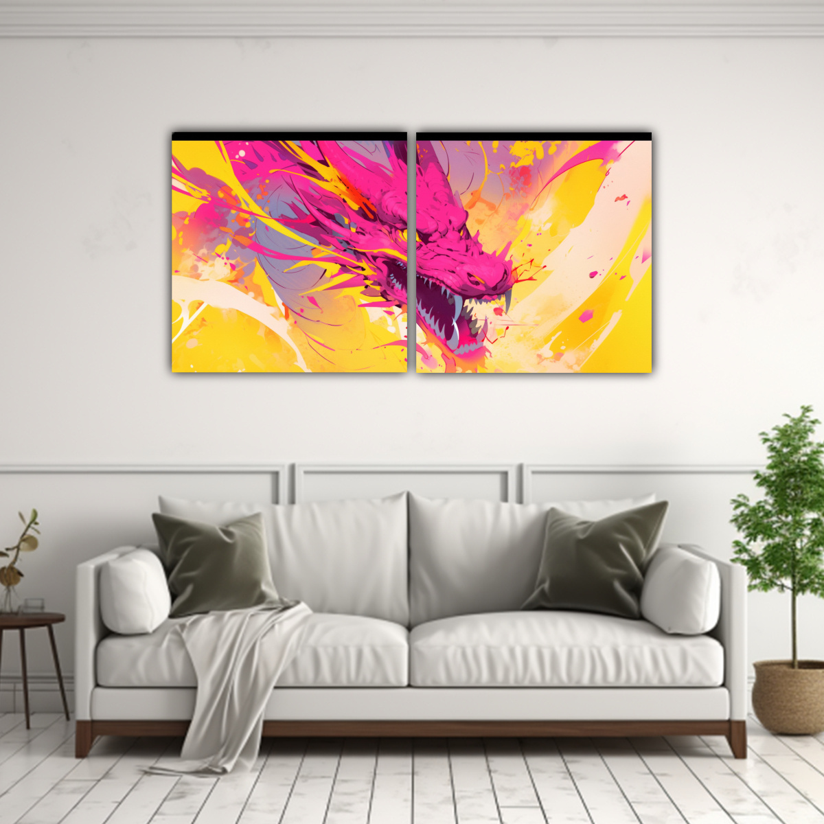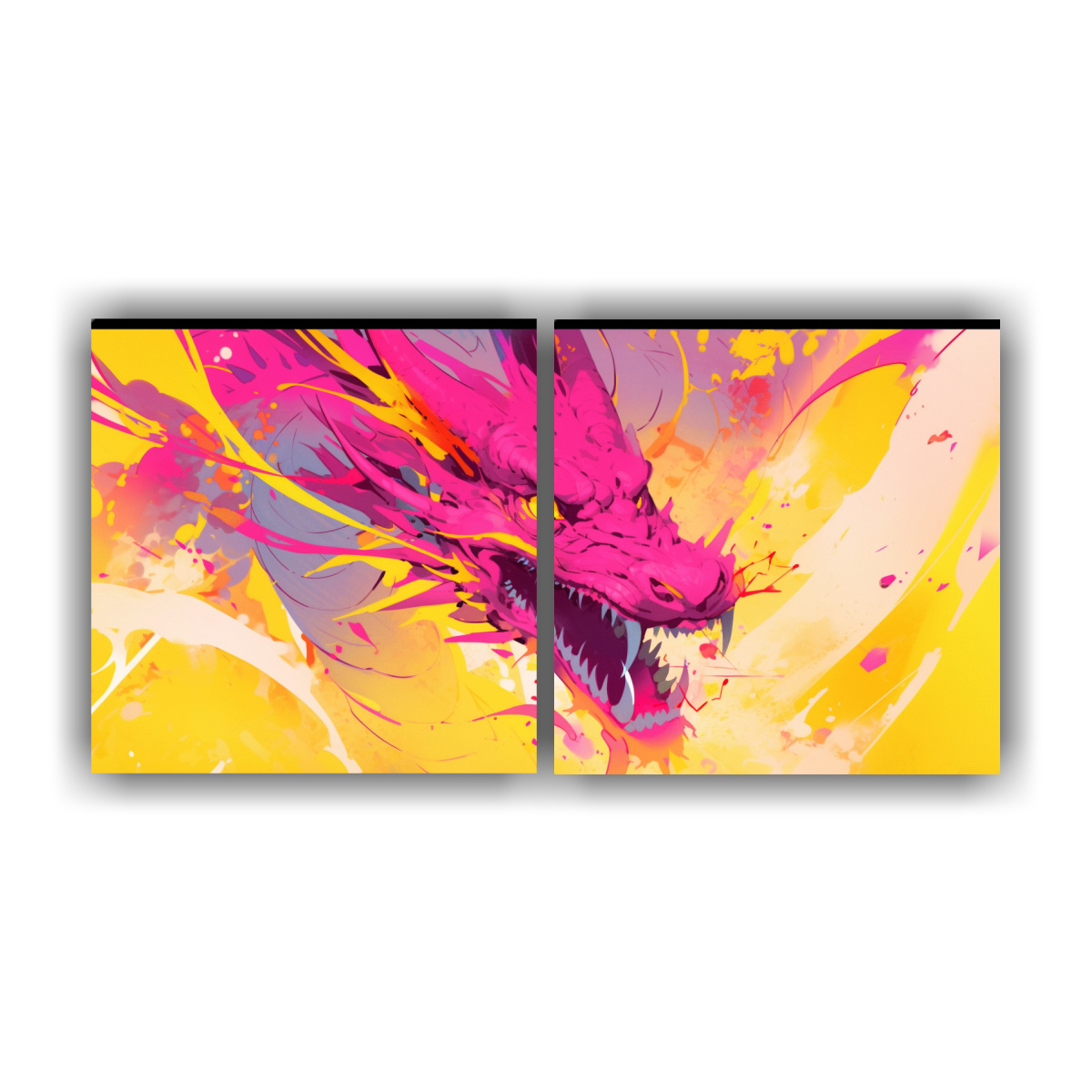 Pinturas De Decoración: Dragón Amarillo Y Rosa En Ambiente Neonoir.