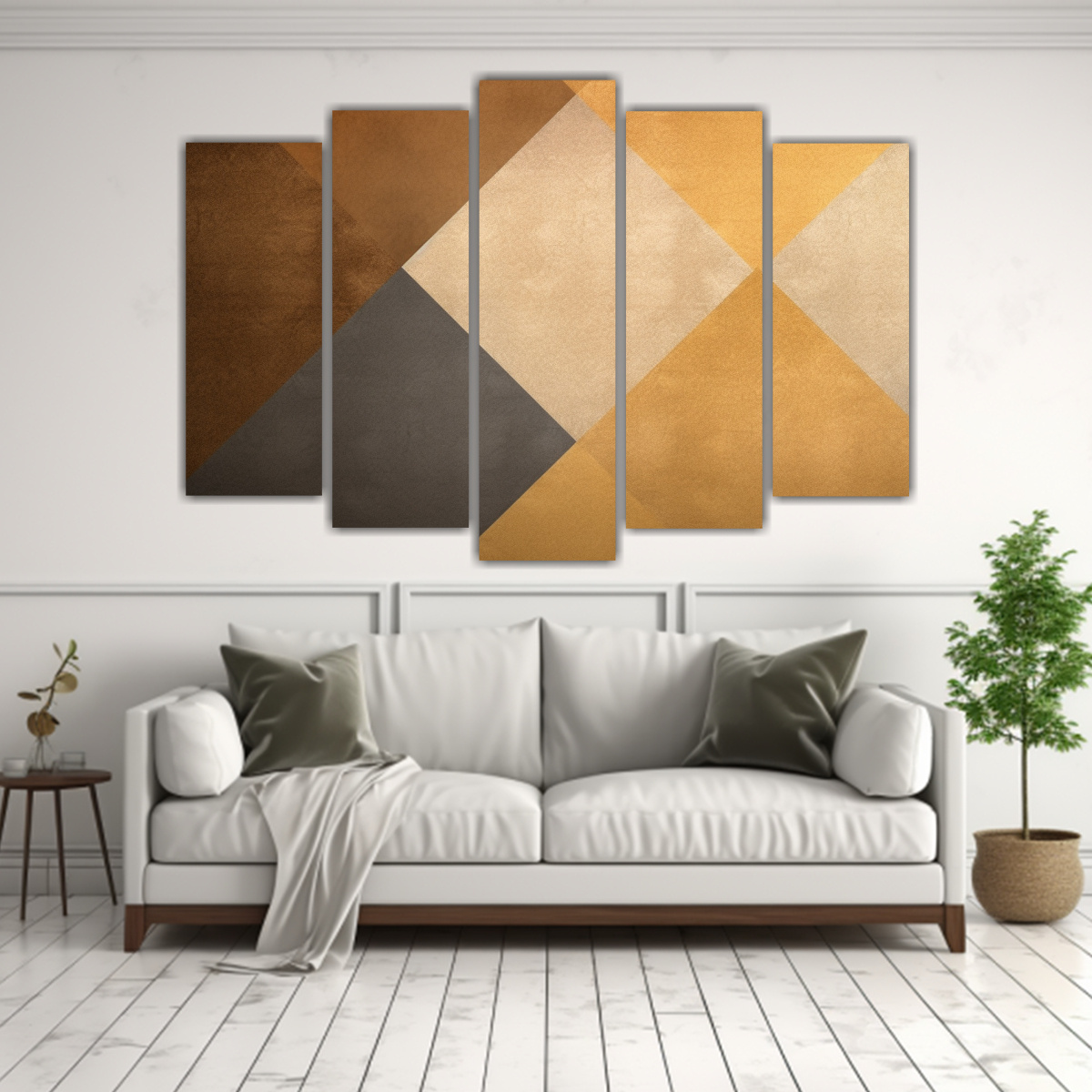 Pinturas De Decoración En Diseño Geométrico Dorado Y Beige