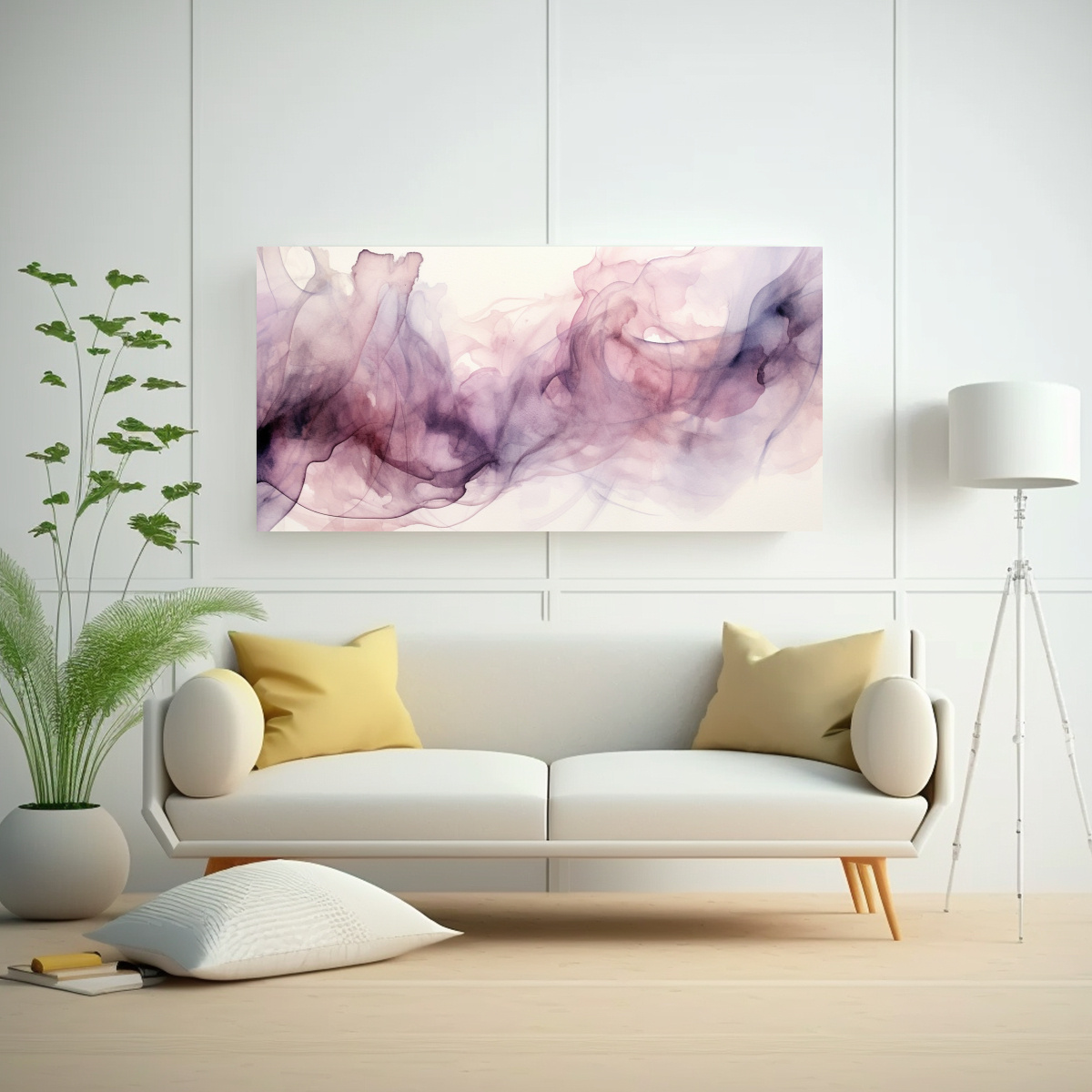 Para resaltar la belleza de este cuadro de textura acuarela gris y malva, te recomendamos colocarlo en una pared de tonos neutros como blanco o gris claro Combínalo con muebles en tonos plata o beige para crear un ambiente sofisticado y armonioso en tu hogar u oficina