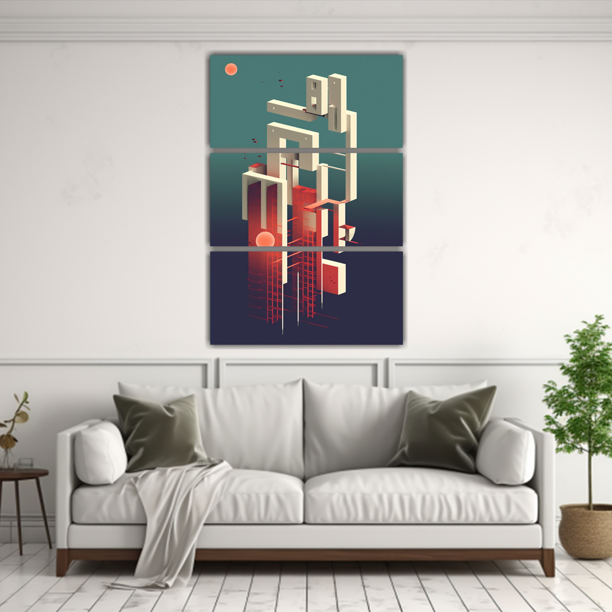 Coloca este conjunto de tres cuadros en la sala de estar para crear un ambiente acogedor y sofisticado Combínalos con muebles en tonos neutros como beige o blanco, y añade cojines en tonos cálidos como naranja o marrón para resaltar los colores del cuadro Completa la decoración con elementos decorativos en metal plateado para darle un toque moderno ¡Crearás un espacio único y lleno de estilo!