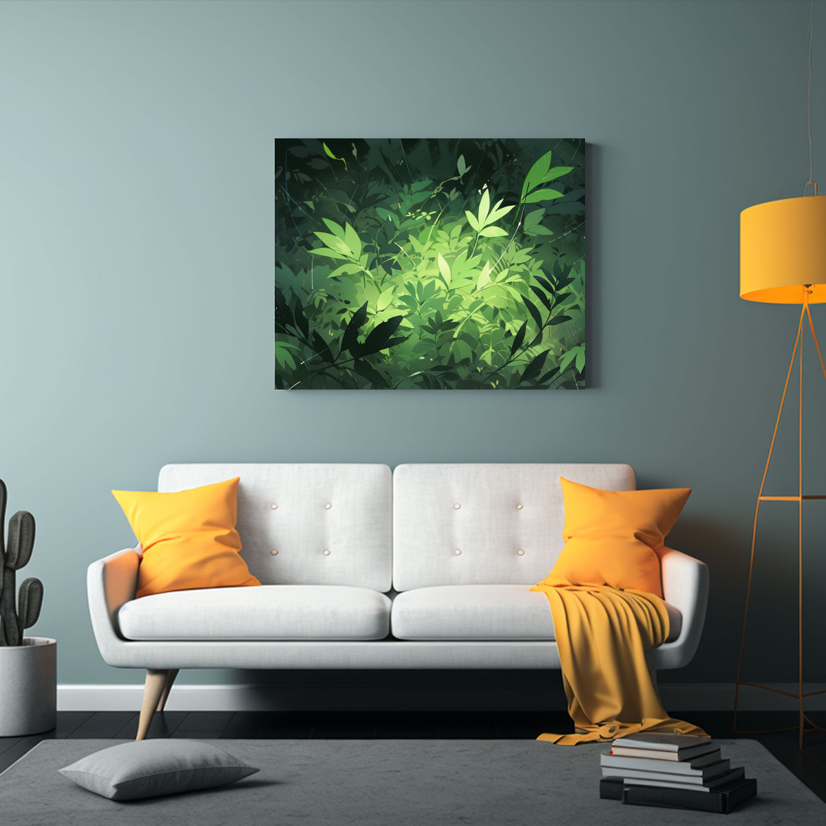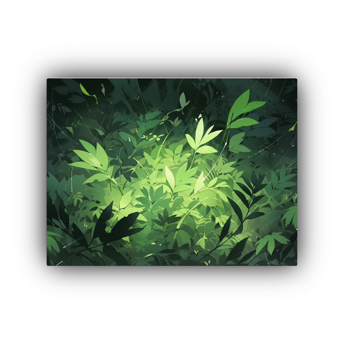 Este cuadro en verde y negro con atmósfera neonoir sería ideal para colocar en un espacio minimalista o moderno, aportando un contraste sofisticado Combínalo con muebles de tonos neutros y detalles plateados para resaltar su estilo único