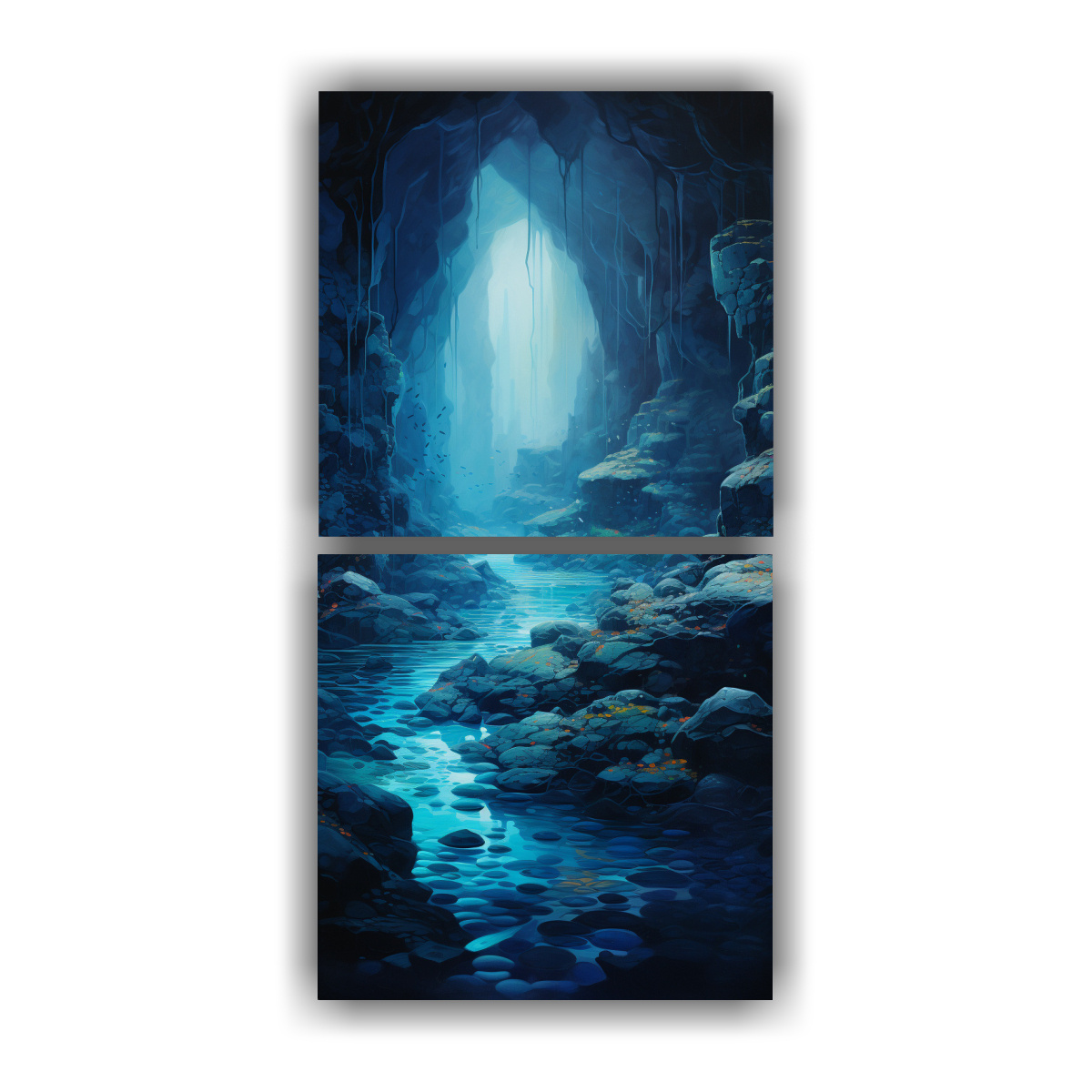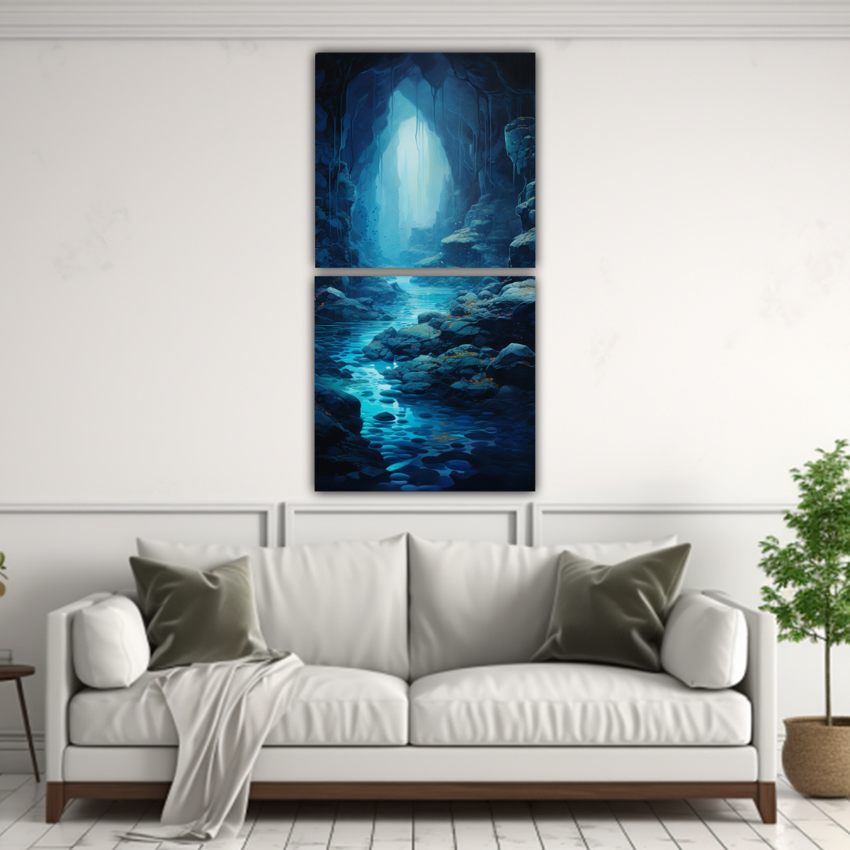 Pinturas de decoración Exuberante imagen de las enigmáticas cuevas submarinas en 2 lienzos de tela Set 2 Lienzos De Tela Imagen Exuberantes The enigmatic beauty of underwater caves depicted